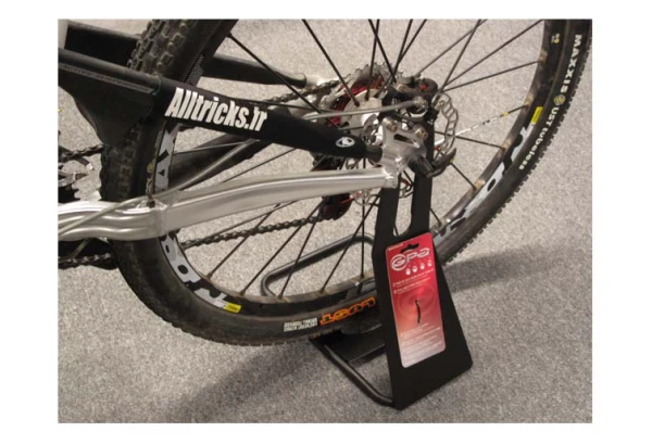 Pied de vélo en acier peu encombrant ayant une très bonne stabilité. Les extrémités sont en caoutchouc pour ne pas rayer le vélo.