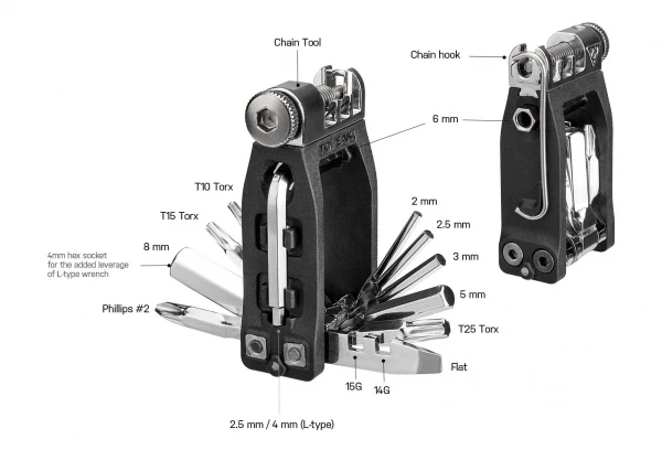 L’outil multifonction Ninja 16+ est léger et compact. Très pratique, il se glisse dans une poche de maillot, une sacoche de selle ou même une boîte à outils Ninja. L’outil pour chaîne est compatible avec les chaînes de une à 12 vitesses (NON compris les chaînes à broches creuses Campagnolo®).