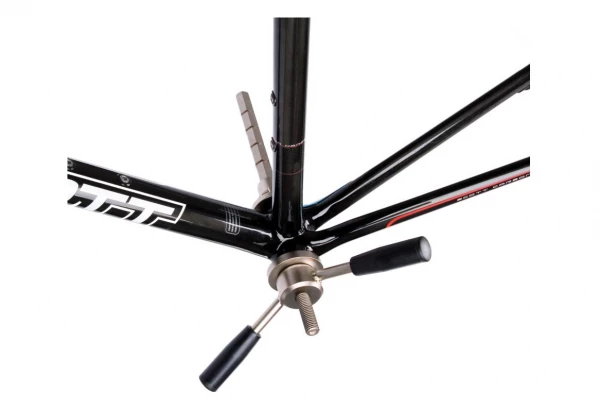 Le HHP-2 permet également de tenir fermement les clefs pour cuvettes fixes pendant l’installation ou démontage des boîtiers de pédaliers réglables. Le système de blocage rapide permet d’installer et enlever l’outil en un clin d’œil, les longs leviers donnent un couple important et les bagues coniques échelonnées permettent une installation parfaite des cuvettes.