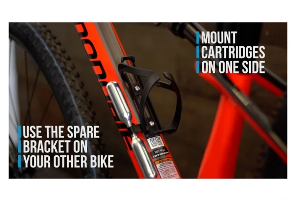 Ce qui rend le support de cartouche CO₂ Lyne unique, c’est sa conception réglable à verrouillage. Cela permet d’ajuster l’espacement entre les cartouches pour obtenir un ajustement parfait et ajusté sur chaque cadre. Le support peut également être retourné pour changer la position des cartouches.