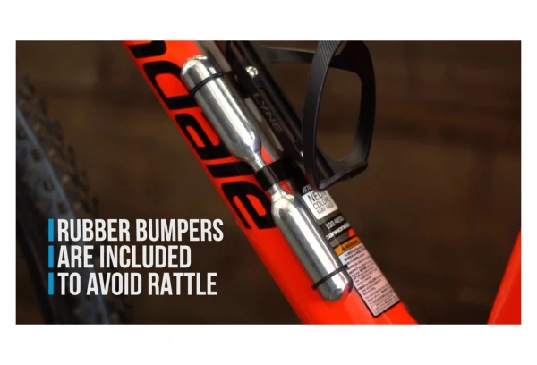 Des anneaux en caoutchouc sont inclus avec le kit et sont utilisés sur les cartouches de CO₂ pour éviter tout cliquetis indésirable lors du montage des cartouches très près du cadre. Le support de cartouche CO₂ Lyne fonctionne également très bien avec le système « Holy Rail ».